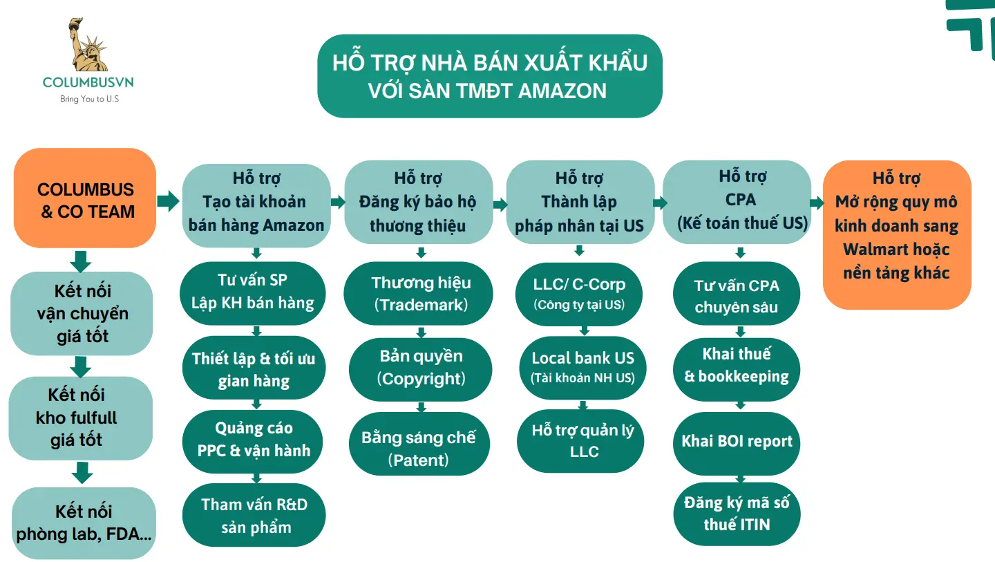Columbus & Co là đơn vị chuyên các dịch vụ hỗ trợ nhà bán ecommerce đặc biệt là nền tảng Amazon.